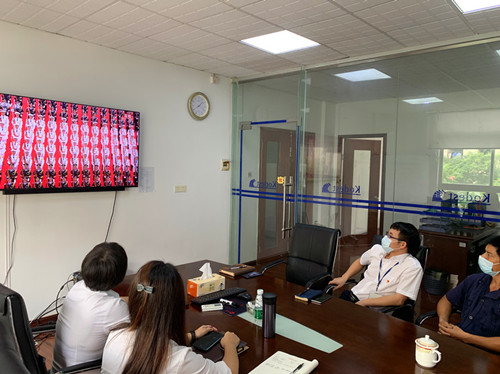 2021年07月01日上午8點,中共廣東科德環??萍脊煞萦邢薰军h支部組織全體黨員及入黨積極分子一起收看《慶祝中國共產黨成立100周年大會》,認真學習習總書記的重要講話: