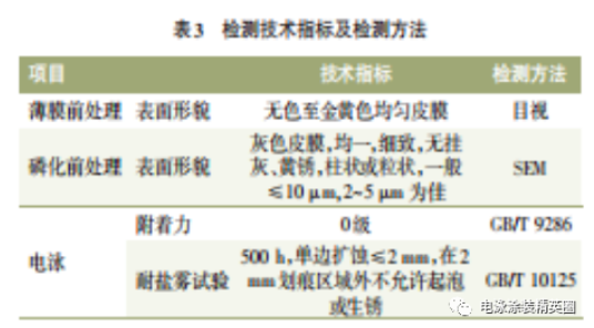 車架用熱軋鋼板采用不同的表面氧化皮去除工藝后,試板經過磷化和薄膜前處理兩種不同的前處理工藝方式,然后在實驗室進行陰極電泳泳板,制板信息詳見表 2。