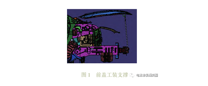 面漆前后蓋工裝安裝設計,我們優先選擇的位置是前蓋鎖扣及后蓋鎖安裝孔,這樣的方式工裝可以選擇防撞梁和前艙蓋鎖扣固定,為方便員工操作固定方式盡量設計簡單方便,見圖6。