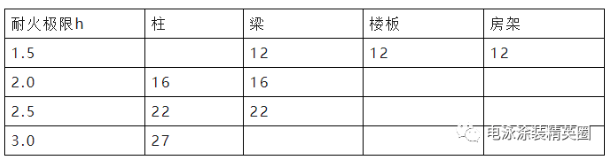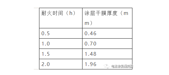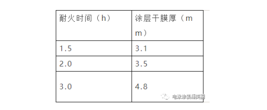 表一(適用于厚漿型鋼結構防火涂料)(涂層厚度㎜)