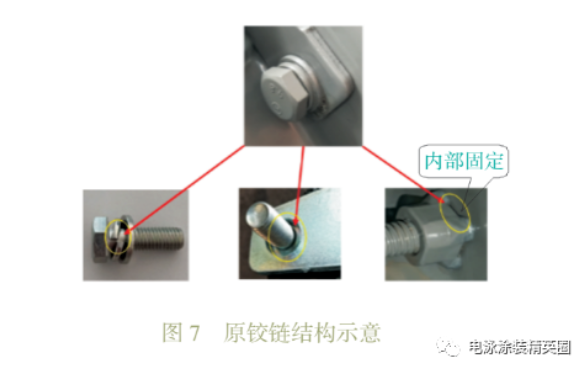鉸鏈區域的連接方式如圖 7 所示,連接固定后存在空腔,經過驗證,此類結構通過純水沖洗無效,加大扭力無效,打磨搭接位置也無效果,但是可通過更換連接螺栓種類,采用自帶墊片、接觸面較大且具有較好防松作用的螺栓,故障率由80%降至5%左右。
